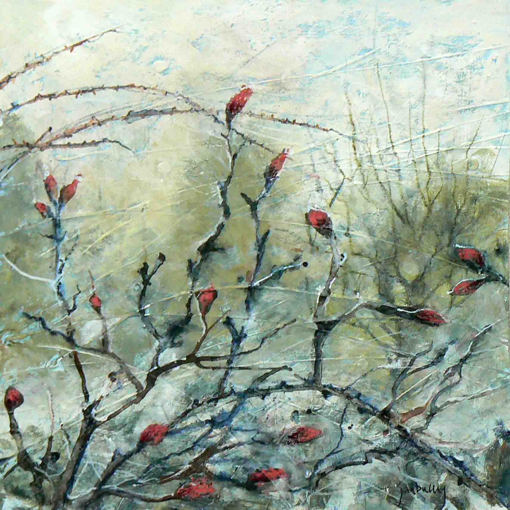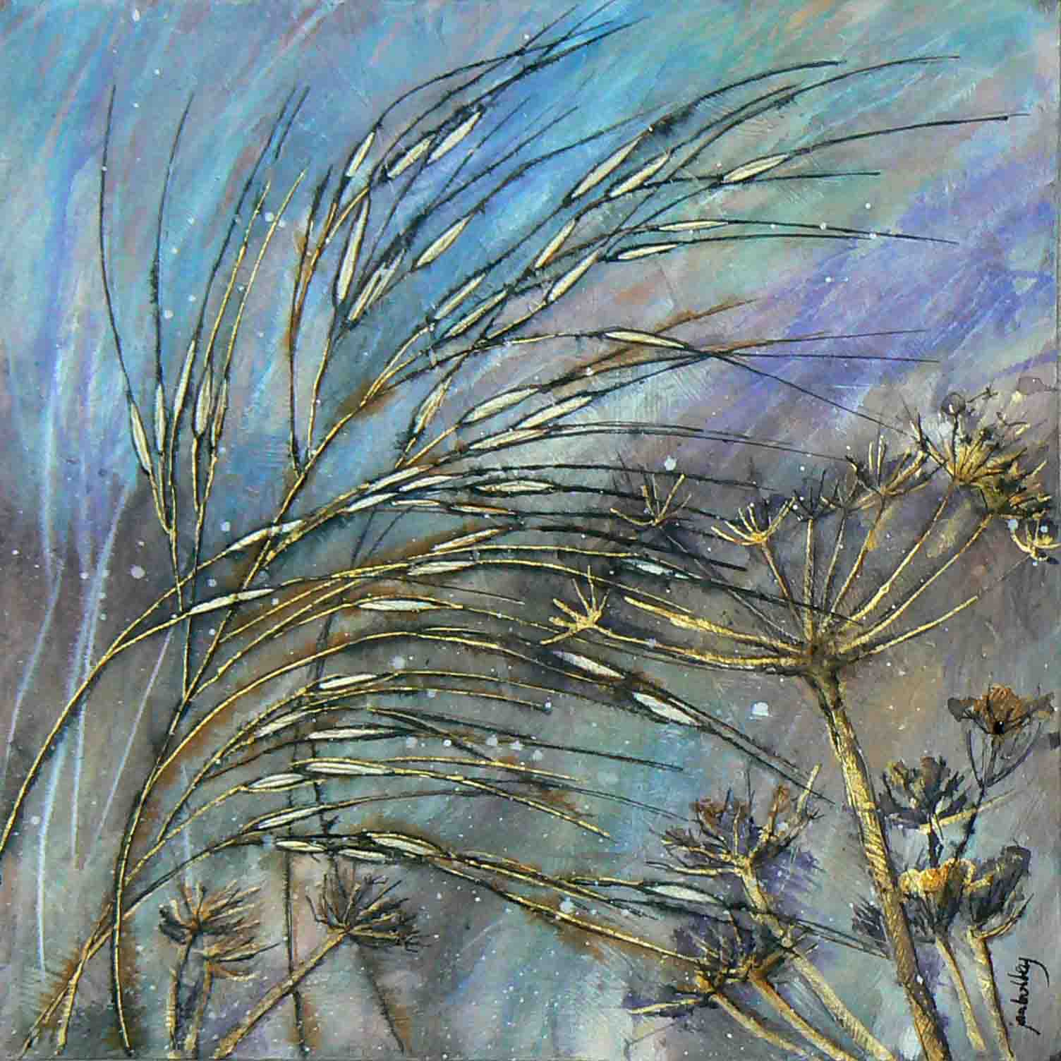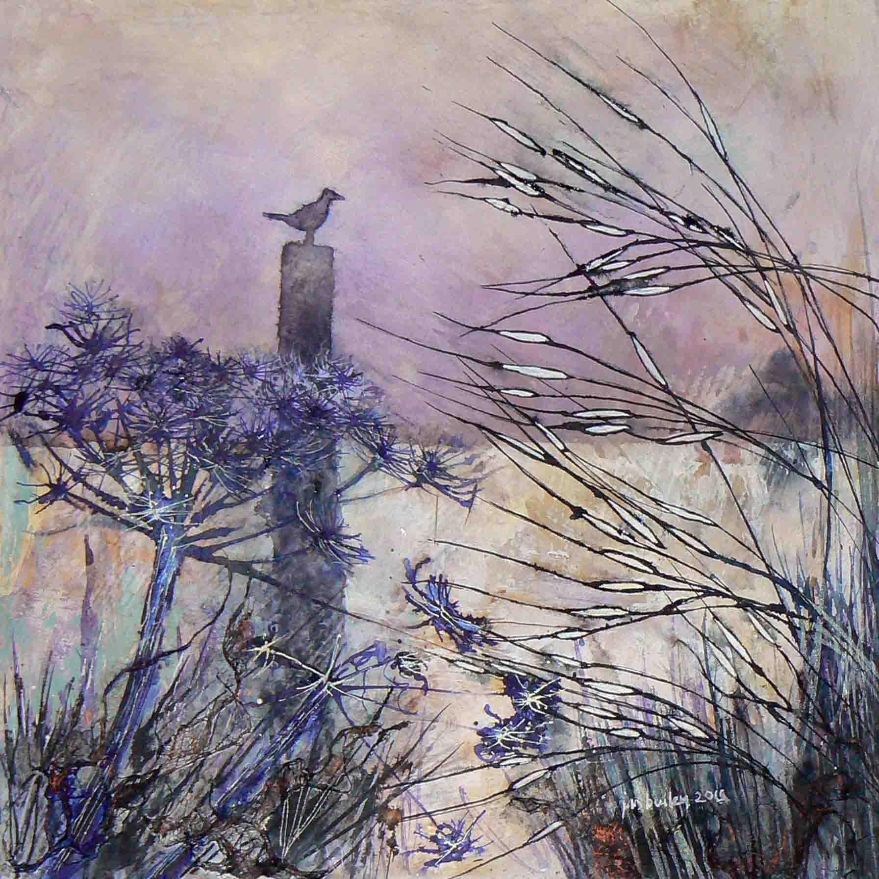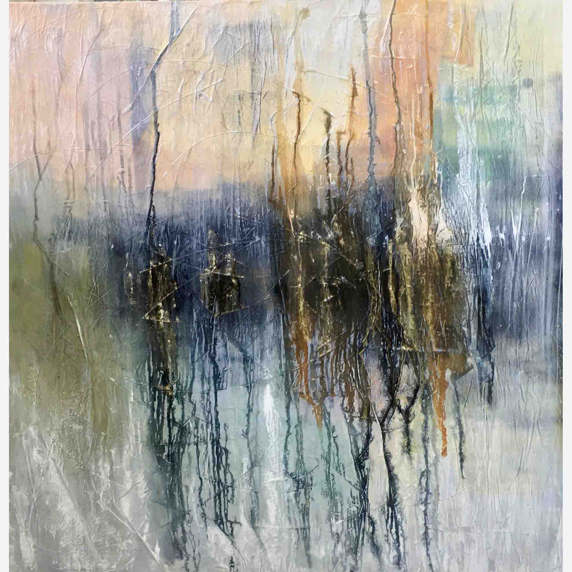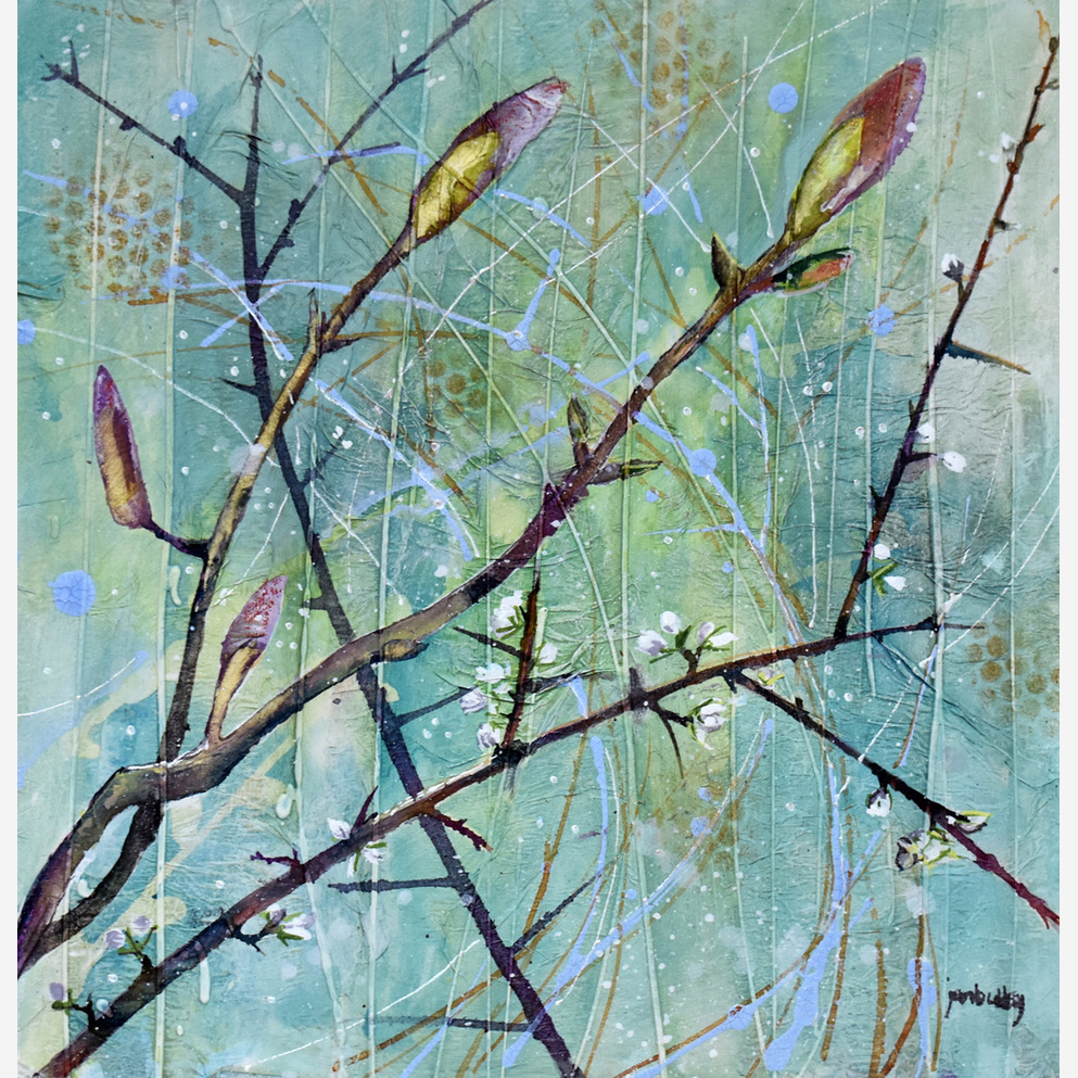 My painting process incorporates many different materials including acrylic paints and inks, tissues and collage papers, mediums, pastels and sometimes plant material. I work in many layers creating texture, which is very important to me, and building up a rich patina.